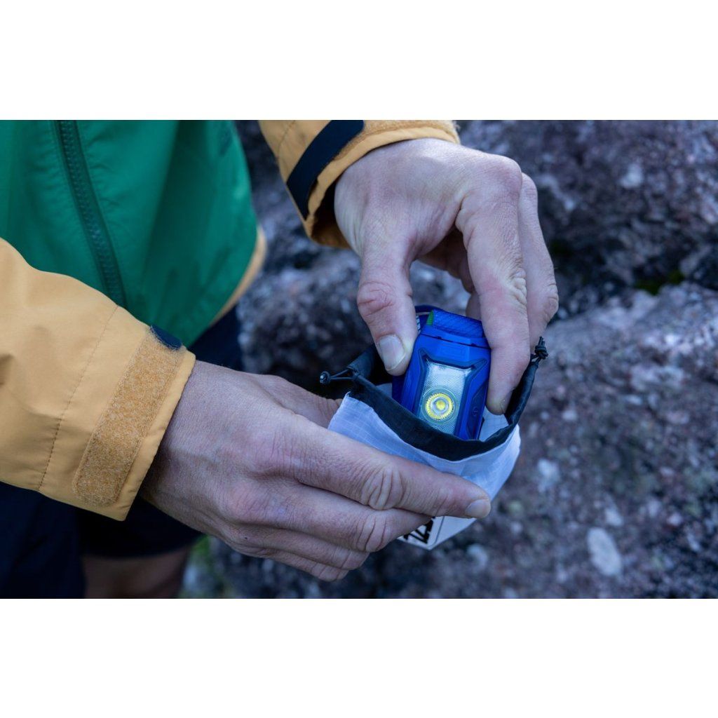 Single button for quick and easy selection of brightness or light color Tiltable base plate allows the beam to be directed as needed Battery charge indicator shows the power level at each switch on or off Phosphorescent reflector for easy location in the dark LOCK function prevents accidental activation during transport or storage Removable and washable headband Storage pouch that also works as a lantern HYBRID CONCEPT technology: TIKKA comes with 3 AAA/LR03 batteries and is compatible with the CORE rechargeable battery (not included); the lamp automatically detects the power source and adjusts brightness Compatible with HELMET ADAPT and BIKE ADAPT 2 mounts (1)