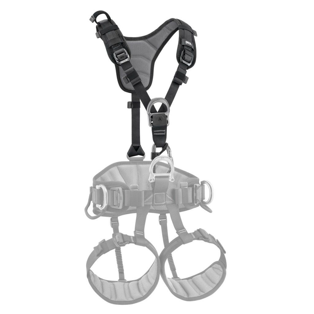 The TOP chest harness transforms AVAO SIT, AVAO SIT FAST, FALCON, FALCON MOUNTAIN, and SEQUOIA SRT sit harnesses into fall-arrest harnesses. The padded shoulder straps are widely spaced to reduce neck chafing. The TOP chest harness helps distribute the load from the waistbelt onto the shoulders.