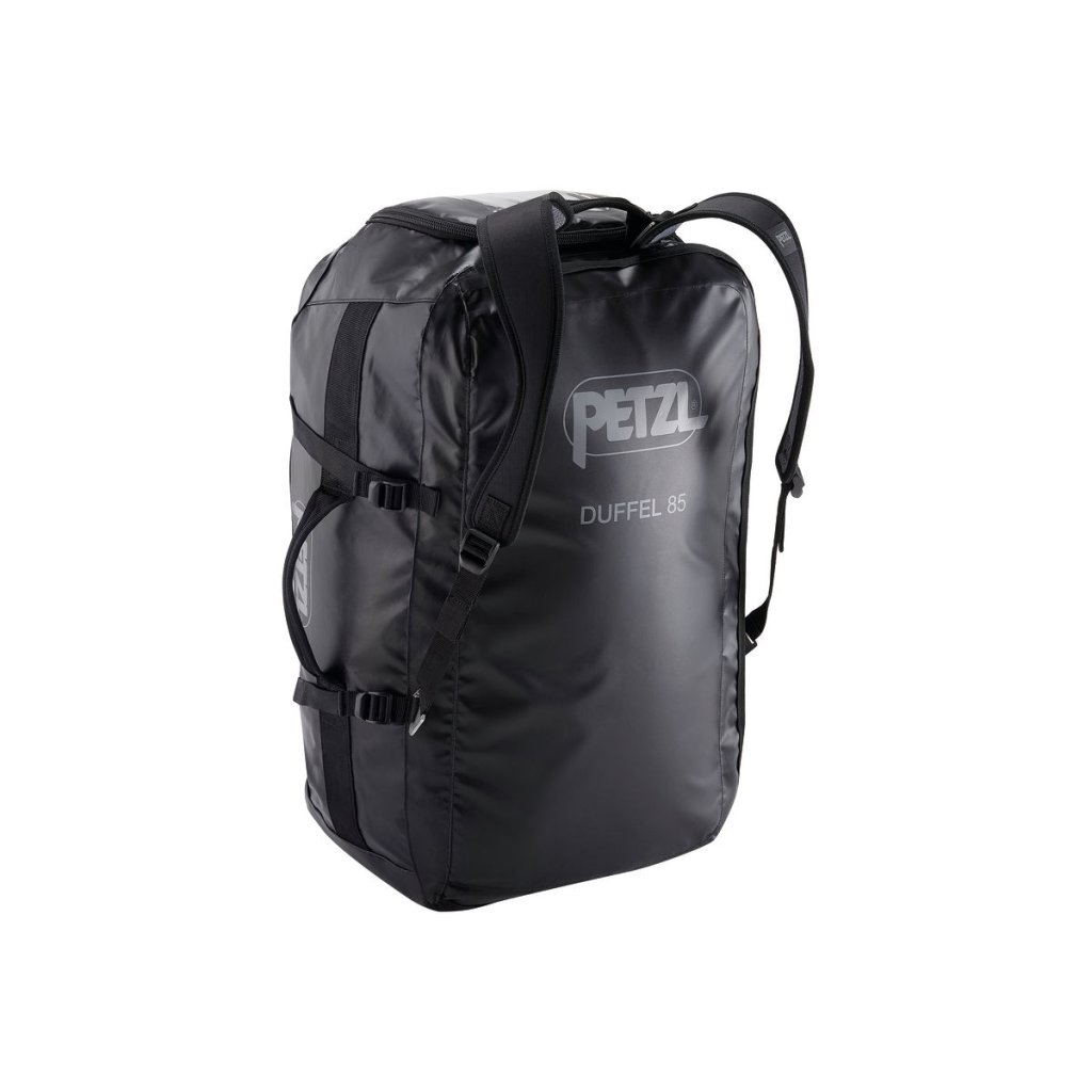 A comfortable, ergonomically shaped transport bag which, thanks to its construction, allows it to be carried in different ways. The PETZL DUFFEL transport bag has padded removable shoulder straps that guarantee comfortable carrying on the back. It is also equipped with a large entrance opening that allows easy access to equipment. It has two pockets on the inside of the lid flap and a large side pocket for a helmet or shoes. The large transparent window is intended for an identification tag. The bag is made of TPU tarpaulin high strength for intensive use. Available in two sizes.