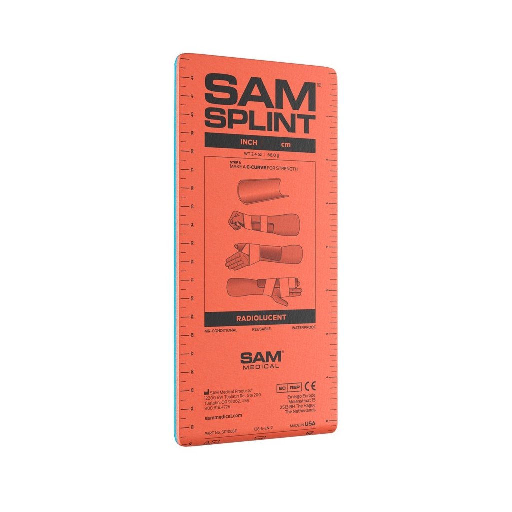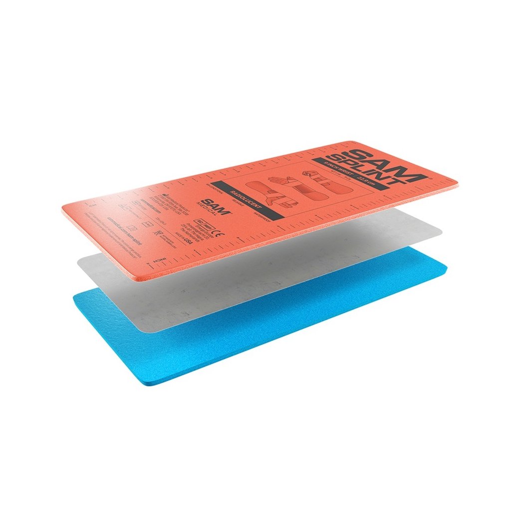 Flexible splint that gains its strength after bending into any simple curve. It is therefore light and compact because it does not rely on heavier solid materials. The splint SAM Medical SAM SPLINT is made of layers of foam and aluminum. After use, it can be easily washed, bent to its original shape and prepared for next use. The splint is appreciated not only by medical professionals, but also by the US military and even NASA.