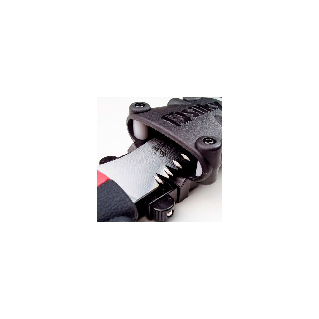 Supplied with an aluminum case equipped with safety guide rollers to prevent damage or blunting of the blade.