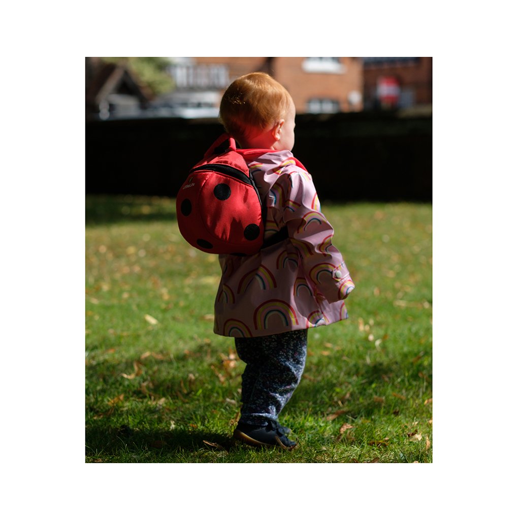 Dětský 2l batůžek s motivem berušky je určený pro děti od 1 až do 3 let. Do batůžku se vejde oblíbená hračka nebo pití na cestu. Důležitou součástí je bezpečnostní vodítko, které zajišťuje rodičům kontrolu dětí v rušných prostorách, ulicích, parku, a zároveň jim umožňuje svobodu, kterou potřebují k vybudování své vlastní důvěry.