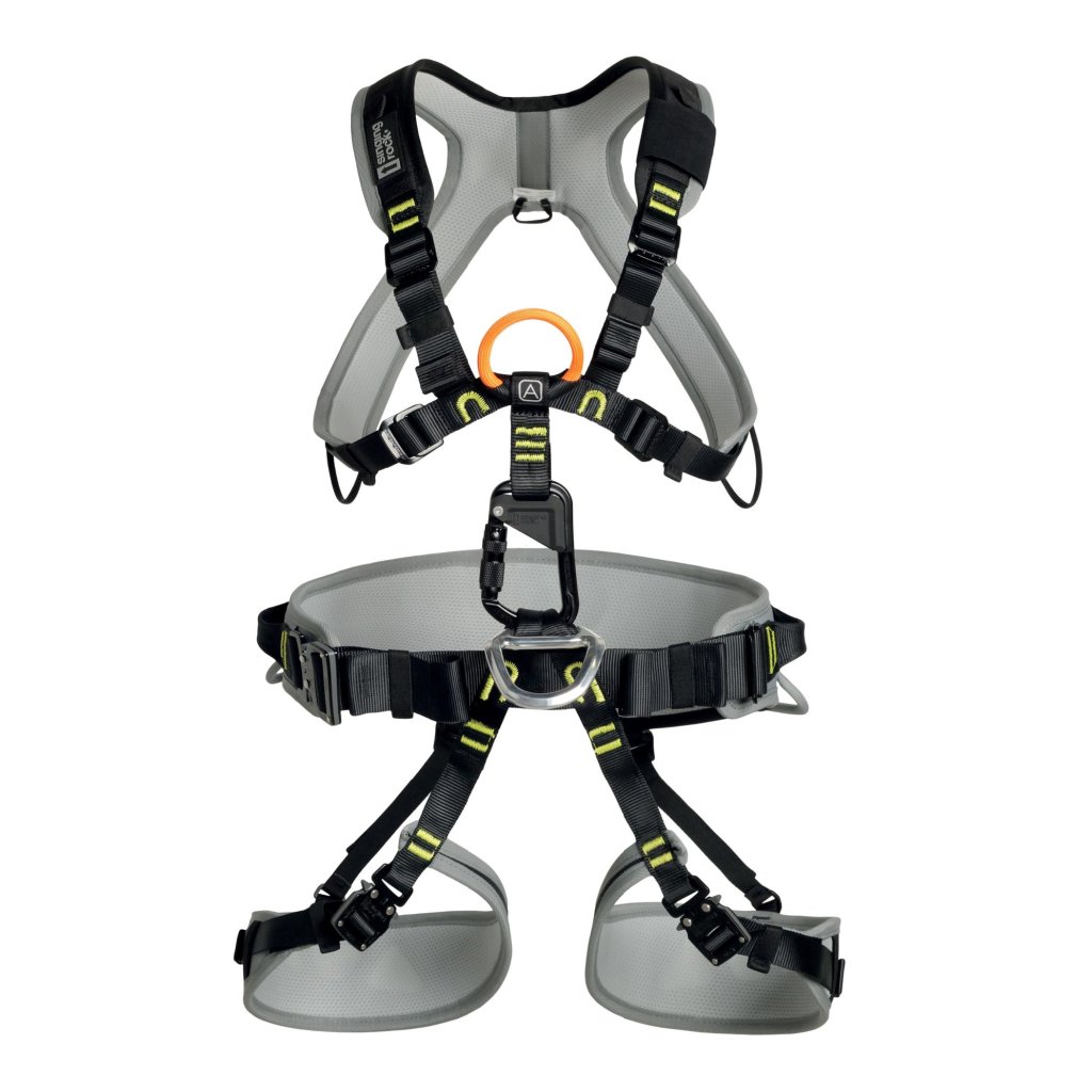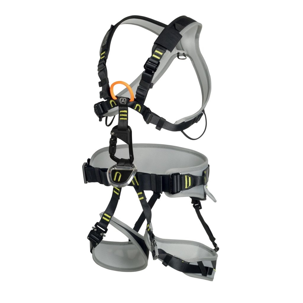 - hrudní úvazek nabízí oranžový textilní bod EN 361 pro zachycení pádu označený štítkem A