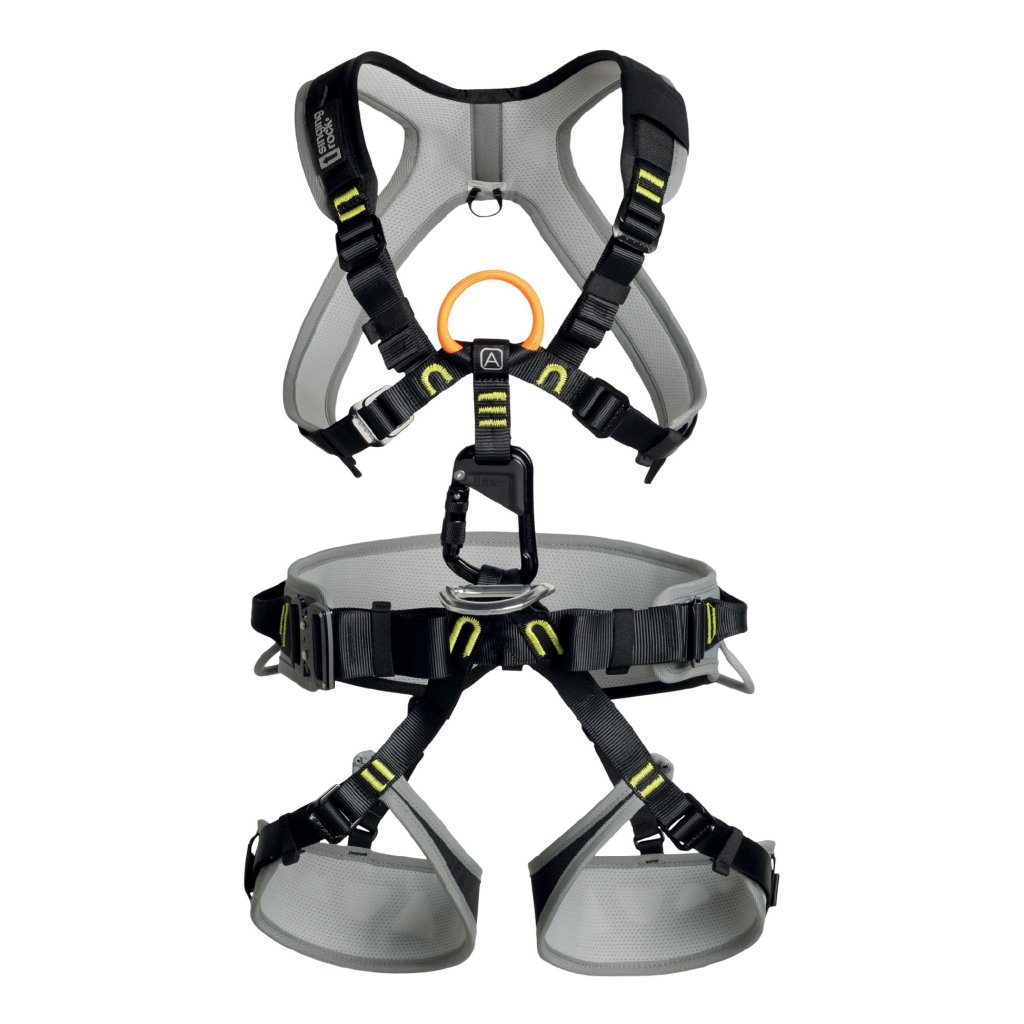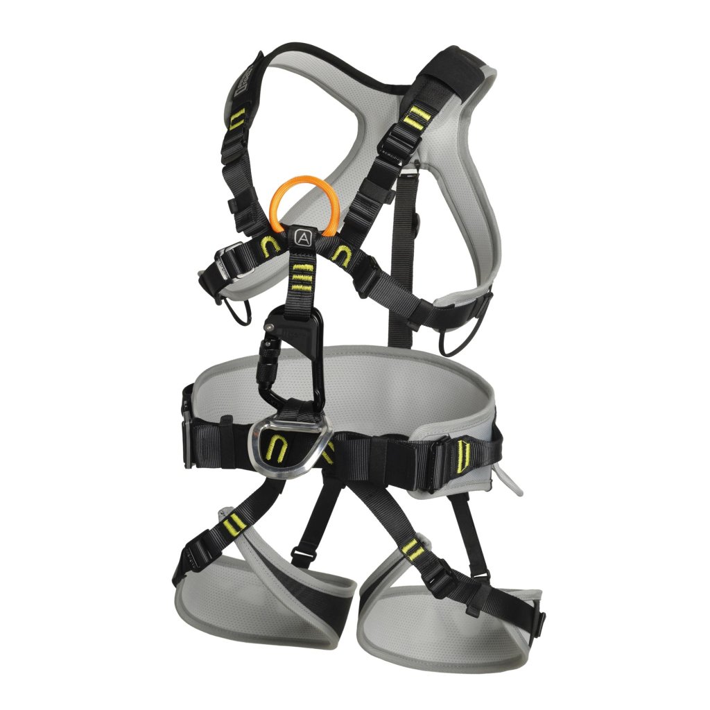 - hrudní úvazek nabízí oranžový textilní bod EN 361 pro zachycení pádu označený štítkem A