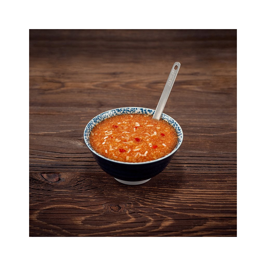 V balení nejsou žádné umělé přísady, žádné přidané cukry, žádný palmový olej a žádné konzervační látky. Jídlo je vyrobeno ze 100% přírodních surovin. Doba spotřeby jsou cca 4 roky.