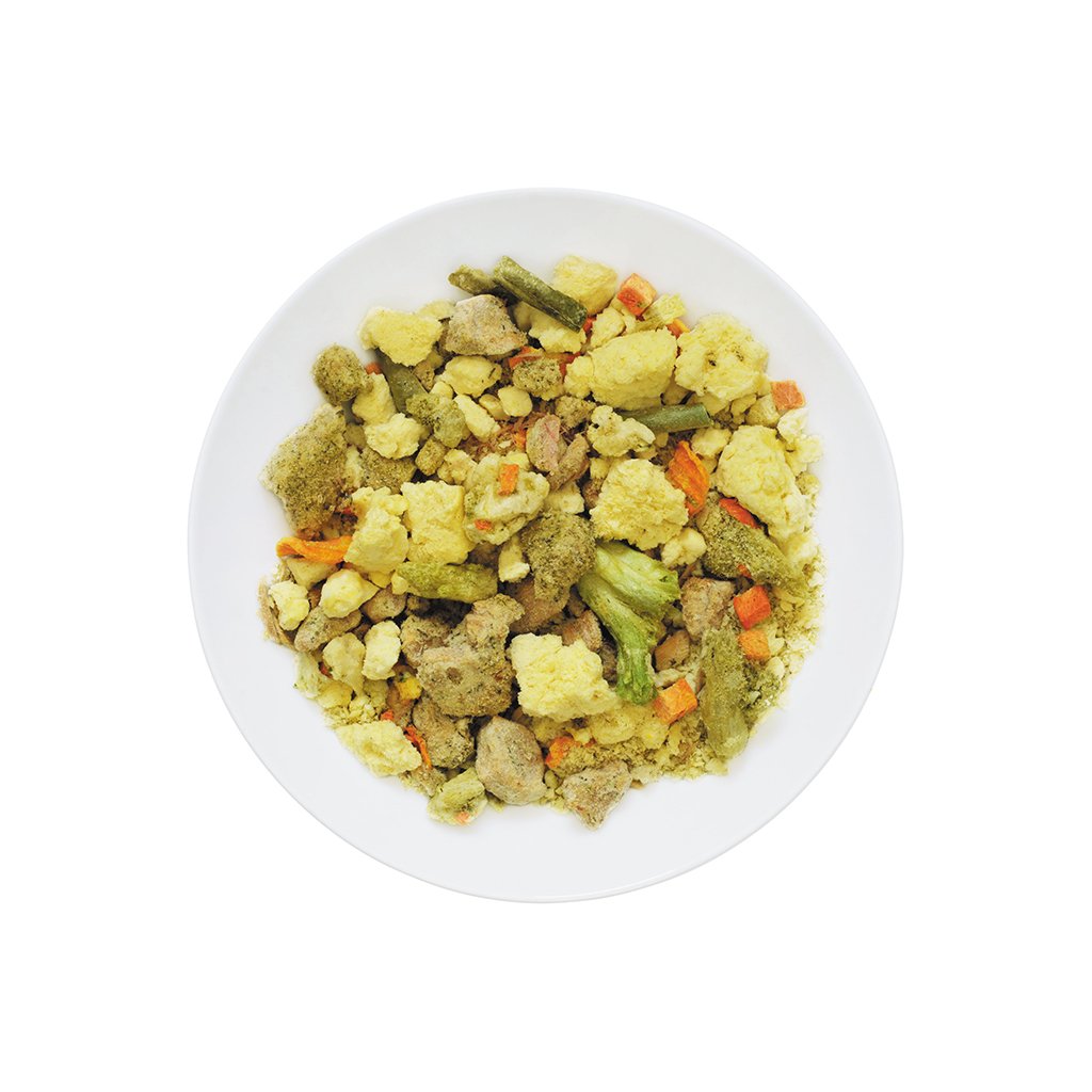 Jídla jsou před vysušením mrazem vařena a ochucena.