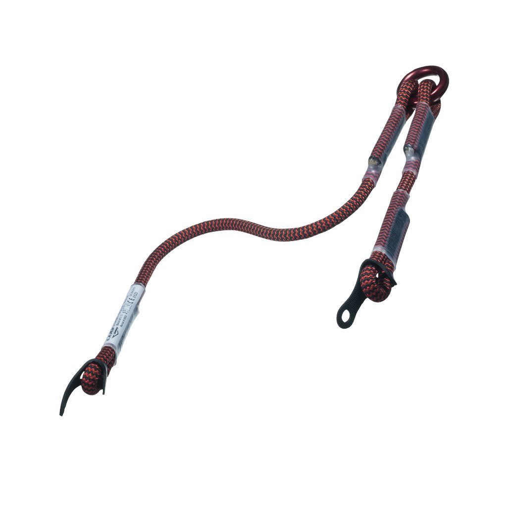 Asymetrický „V“ lanyard pro práce ve výškách, vyrobený z dynamického lana o průměru 11mm. Výhodou je vyšší úroveň bezpečnosti uživatele, jelikož při zachycení případného pádu absorbují dynamická vlákna nezanedbatelnou část pádové energie, čímž tlumí hodnotu rázové síly, působící jak na materiál, tak tělo uživatele. Ramena lanyardu jsou spojena kroužkem z hliníkové slitiny, čímž je garantována pevnost 22 kN při zatížení v jakémkoliv směru. Dodává se včetně gumového zajištění karabin proti pohybu, šitá oka jsou chráněna odolným průhledným plastovým krytem.