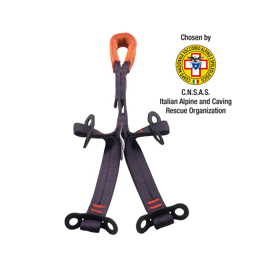 Flexibilní textilní kotvící bod určený pro záchranné operace v podvěsu vrtulníku. Umožňuje vytvořit 4-bodový závěs (např. pro nosítka) z jednoho přípojného bodu. Vyrobeno z polyamidového pevnostního popruhu šířky 21mm. Pracovní zatížení max. 300 kg. Při zatížení 4 kN a vyšší se rozpáře kontrolní šití, které slouží jako indikátor přetížení. Certifikováno dle EN 354.