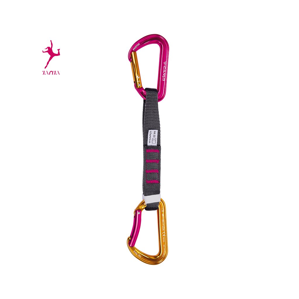 Rozšírený prémiový model C.A.M.P. Photon Express KS Janja patrí do jedinečnej dizajnovej kolekcie Janja Garnbret. Photon Express KS Janja Express s ultraľahkými karabínami s plným kľúčovým zámkom C.A.M.P. Photon Straight Gate a C.A.M.P. Photon Bent Gate je súčasťou vybavenia, ktoré si Janja - dvojnásobná olympijská víťazka - osvojila po viac ako 10 rokoch spolupráce so značkou C.A.M.P. Janja je najväčšou lezeckou ikonou, ktorá svojimi výkonmi a osobnosťou inšpirovala milióny mladých ľudí na celom svete. Model Express Photon presne vyhovuje potrebám začiatočníkov a skúsenejších lezcov, ktorí sa chcú venovať širšiemu spektru lezeckých disciplín. Karabíny C.A.M.P. Photon sú vylepšené patentovanou úpravou SphereLock, ktorá presným zrezaním nosa a zámku karabíny dodáva ešte väčšiu pevnosť pri zaťažení. Dôležitou súčasťou expresky je príslušenstvo Karstop Evo, ktoré zabraňuje prekrúteniu karabíny cez lano.