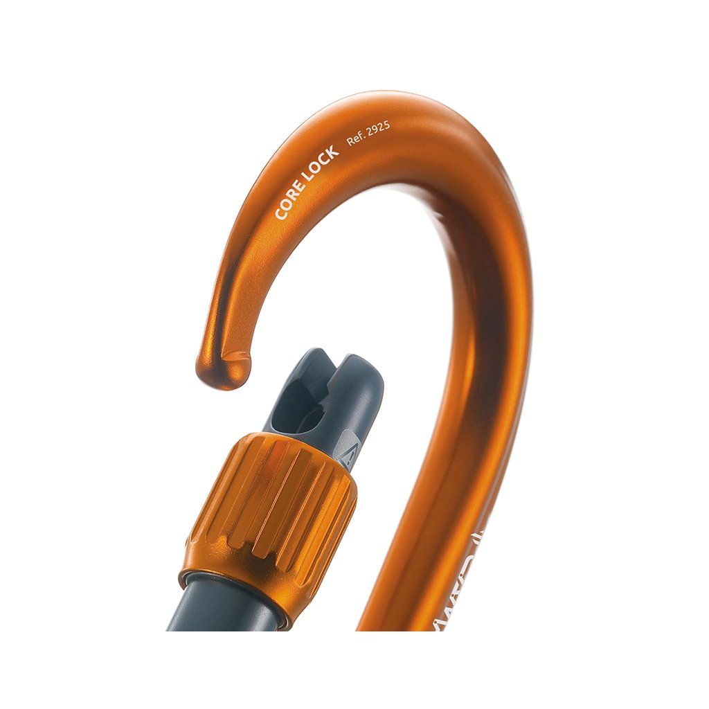Unikátní široký tvar HMS karabiny Core Lock vyniká velkou světlostí, výbornou prostupností lana a díky nové úpravě šroubovací pojistky zámku, také maximálně jednoduchým ovládáním jednou rukou. Díky hladkému povrchu je jištění a slaňování velmi plynulé. Patentovaná úprava nosu a zámku karabiny SphereLock zaručuje ještě vyšší pevnost při zatížení. Pro zvýšení bezpečnosti je zámek karabiny opatřen laserovým výbrusem, který značí, je-li pojistka zámku dostatečně zašroubována.