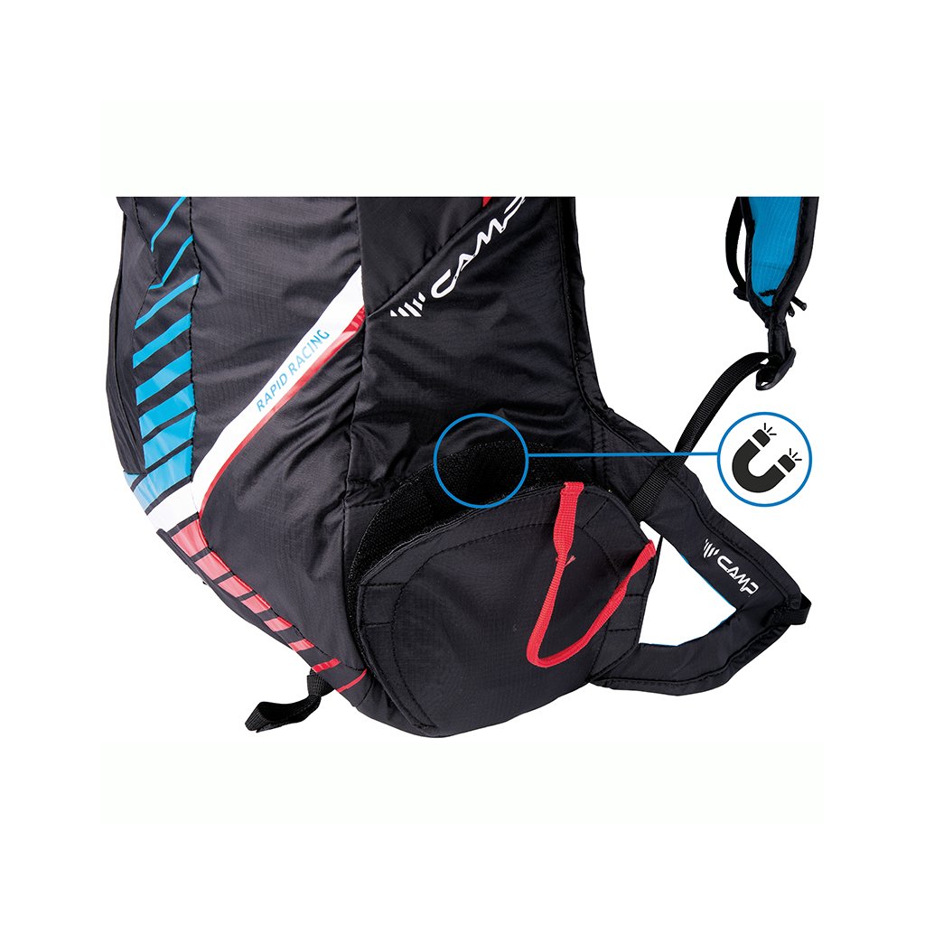 Rapid Racing je speciální závodní skialpový batoh s objemem 20 l a hmotností pouhých 300 g. Jako již několikátou sezónu, tak i tu poslední byl CAMP Rapid Racing u vítězství těch nejtěžších skialpových závodů. Klíčem k úspěchu jsou detaily, které pomáhají ladit přední skialpoví ambasadoři CAMPu - jako například upínací systém lyží X-Press, který je upraven pro to nejrychlejší sundání a nahození lyží. Háček pro uchycení je doplněn ergonomickou smyčkou bungee, která stahuje systém zpět na své místo, je tak vždy po ruce a nikde zbytečně nepřekáží. Mezi další přednosti patří vnitřní oddělená komora na mačky s bočním vstupem na suchý zip, doplněným o magnetickou vložku, která udržuje zapínání ve správné pozici. Tuto kapsu lze uvnitř batohu zipem rozepnout a zvětšit tak objem hlavní komory.