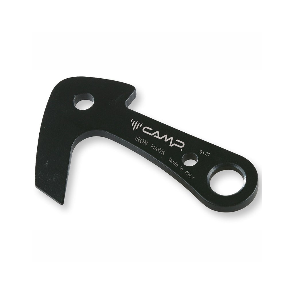 Háček / skoba pro miniaturní vertikální spáry. CAMP Iron Hawk může být zatlučen nebo jenom založen. Má velkou plochu pro zatlučení a malý zobáček pro snadnější vyjmutí.