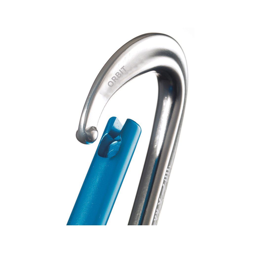 CAMP Orbit Express s 16 mm nylonovou smyčkou v délce 18 cm je v kategorii expresek CAMP jedním z bestsellerů.Orbit Express je složena ze dvou plných karabin CAMP Orbit, kde spodní karabina má prohnutý zámek pro snadnější založení lana. Karabiny Orbit se vyznačují vysokou pevností v podélném směru a jsou navíc vylepšeny o patentovanou úpravu SphereLock, která přesným výbrusem nosu a zámku karabiny ještě zvyšuje pevnost při zatížení. Důležitou součástí expresky je doplněk Karstop Evo, který zamezuje protáčení karabiny, kterou prochází lano.