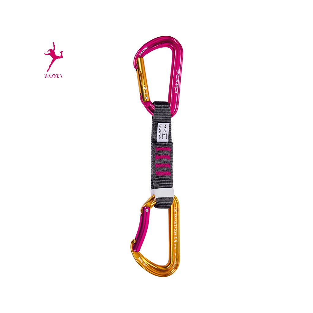 Prémiový model C.A.M.P. Photon Express KS Janja express patrí do jedinečnej dizajnovej kolekcie Janja Garnbret. Expreska Photon Express KS Janja s ultraľahkými karabínami s plným kľúčovým zámkom C.A.M.P. Photon Straight Gate a C.A.M.P. Photon Bent Gate je súčasťou výbavy, ktorú si Janja - dvojnásobná olympijská víťazka - osvojila po viac ako 10 rokoch spolupráce so značkou C.A.M.P. Janja je najväčšou lezeckou ikonou, ktorá svojimi výkonmi a osobnosťou inšpirovala milióny mladých ľudí na celom svete. Model Express Photon presne vyhovuje potrebám začiatočníkov a skúsenejších lezcov, ktorí sa chcú venovať širšiemu spektru lezeckých disciplín. Karabíny C.A.M.P. Photon sú vylepšené patentovanou úpravou SphereLock, ktorá presným zrezaním nosa a zámku karabíny dodáva ešte väčšiu pevnosť pri zaťažení. Dôležitou súčasťou expresky je príslušenstvo Karstop Evo, ktoré zabraňuje prekrúteniu karabíny cez lano.