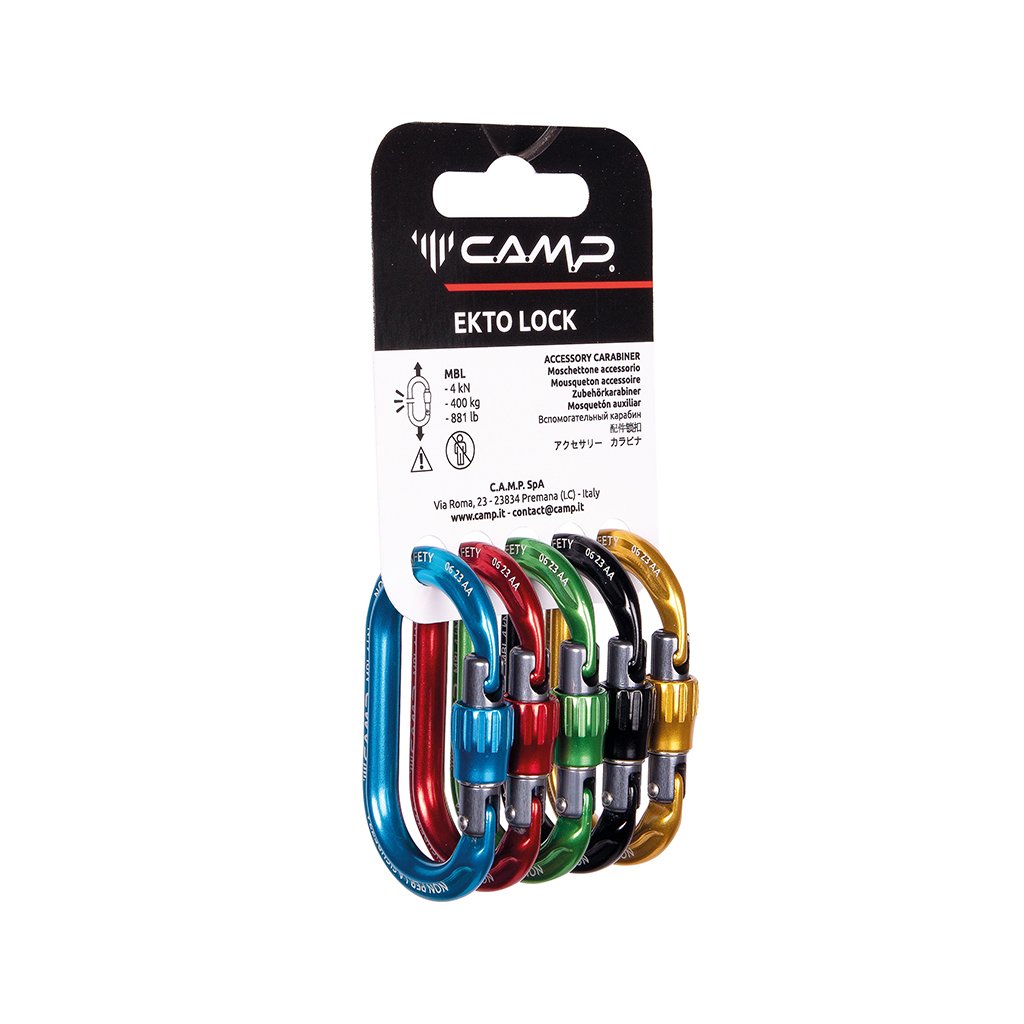 Sada 5ks pracovních materiálových karabin se šroubovací pojistkou zámku, speciálně navržených pro profesionály, kterým záleží na maximální pevnosti a spolehlivosti při minimální hmotnosti hardwaru. I když je podélná pevnost karabin Ekto Lock 4 kN, v žádném případě NENÍ určena pro záchranu ani zajišťování osob.