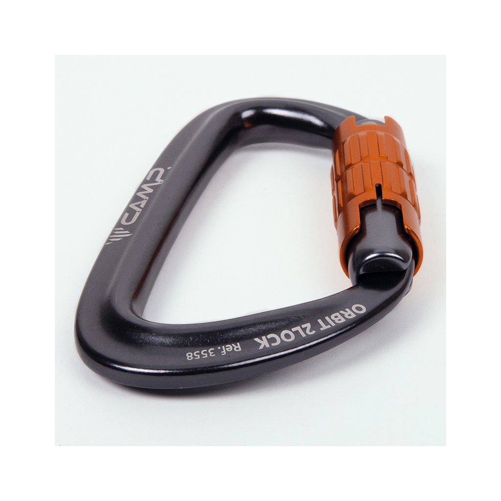Orbit 2Lock je ľahučká „D“ karabína s 2-polohovým poistným zámkom (2Lock). Karabína je vhodná na prácu s kladkami alebo blokantmi. C.A.M.P. Orbit 2Lock má patentovanú úpravu nosa a zámku SphereLock, ktorá presným brúsením zvyšuje pevnosť pri zaťažení.