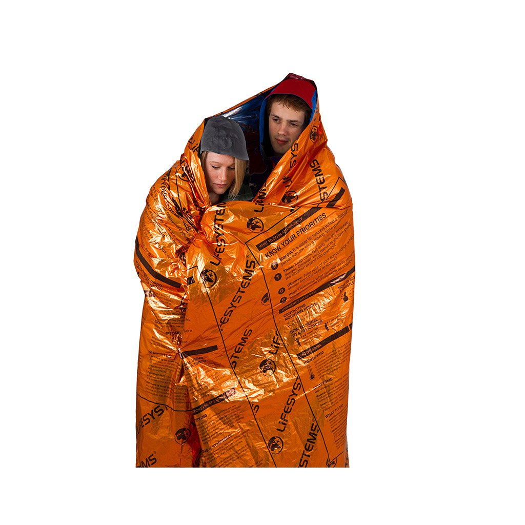Heatshield Blanket Double je nouzová, odolná a skladná fólie pro 2 osoby, která pomůže udržet tělesnou teplotu v případě úrazu nebo při rychlém zhoršení počasí. Je vyrobena z pokoveného odolného polyethylenu, který odráží zpátky 90% vyzařovaného tělesného tepla. Fólie je nepromokavá, větruodolná a odráží radarové vlny. Díky své pevnosti je možné ji použít opakovaně.