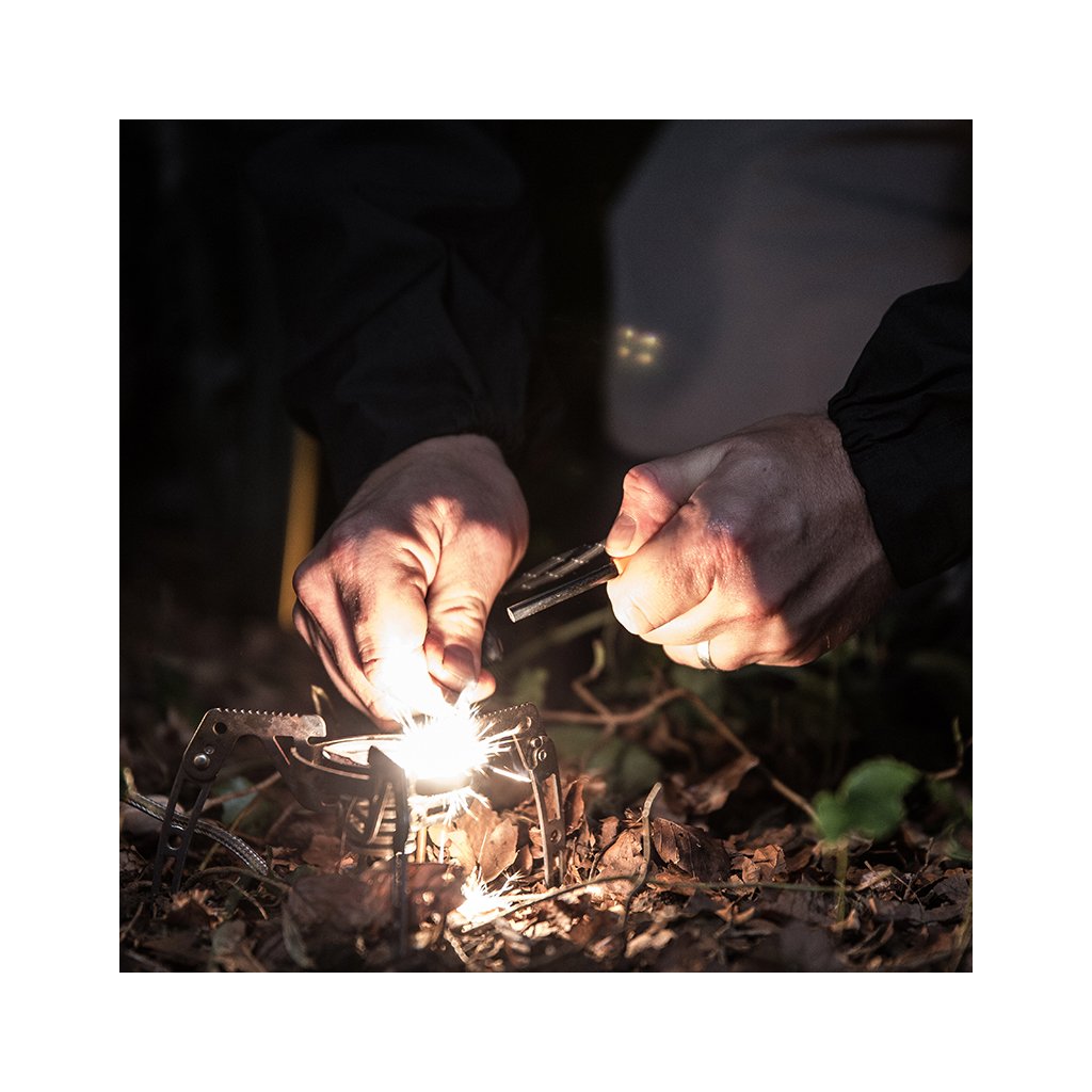 Kompaktní, lehké skládací křesadlo s dvojicí zapalovacích tyčinek, které zaručují bezpečné a velmi jednoduché použití. První škrtací tyčinka je vyrobena z Ferroceria, slitiny Ceria, Lanthanu a Železa. Třením dokáže vytvářet jiskry o teplotě 2980°C. Druhá tyčinka je vyrobena z hořčíku a po naškrábání slouží jako podpal. Křesadlo vytváří jiskry za každého počasí.