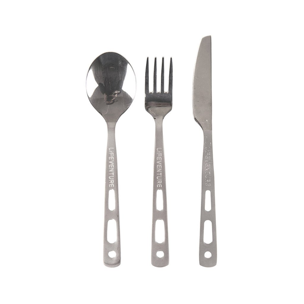 Klasický set príborov obsahujúci vidličku, nôž a lyžicu. Set Lifeveture Knife Fork Spoon Set - Basic je vhodný na kempovanie alebo na cesty. Je vyrobený z kvalitnej nerezovej ocele.