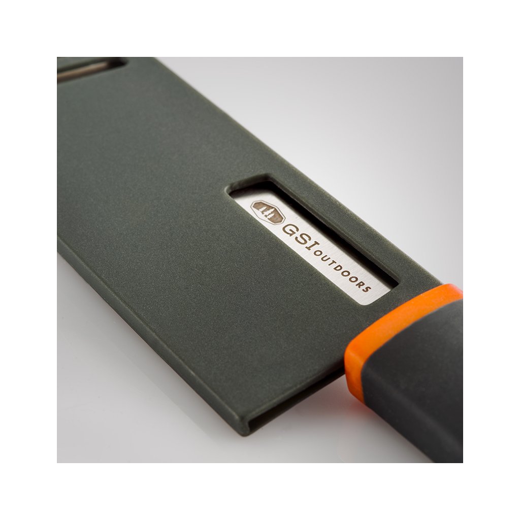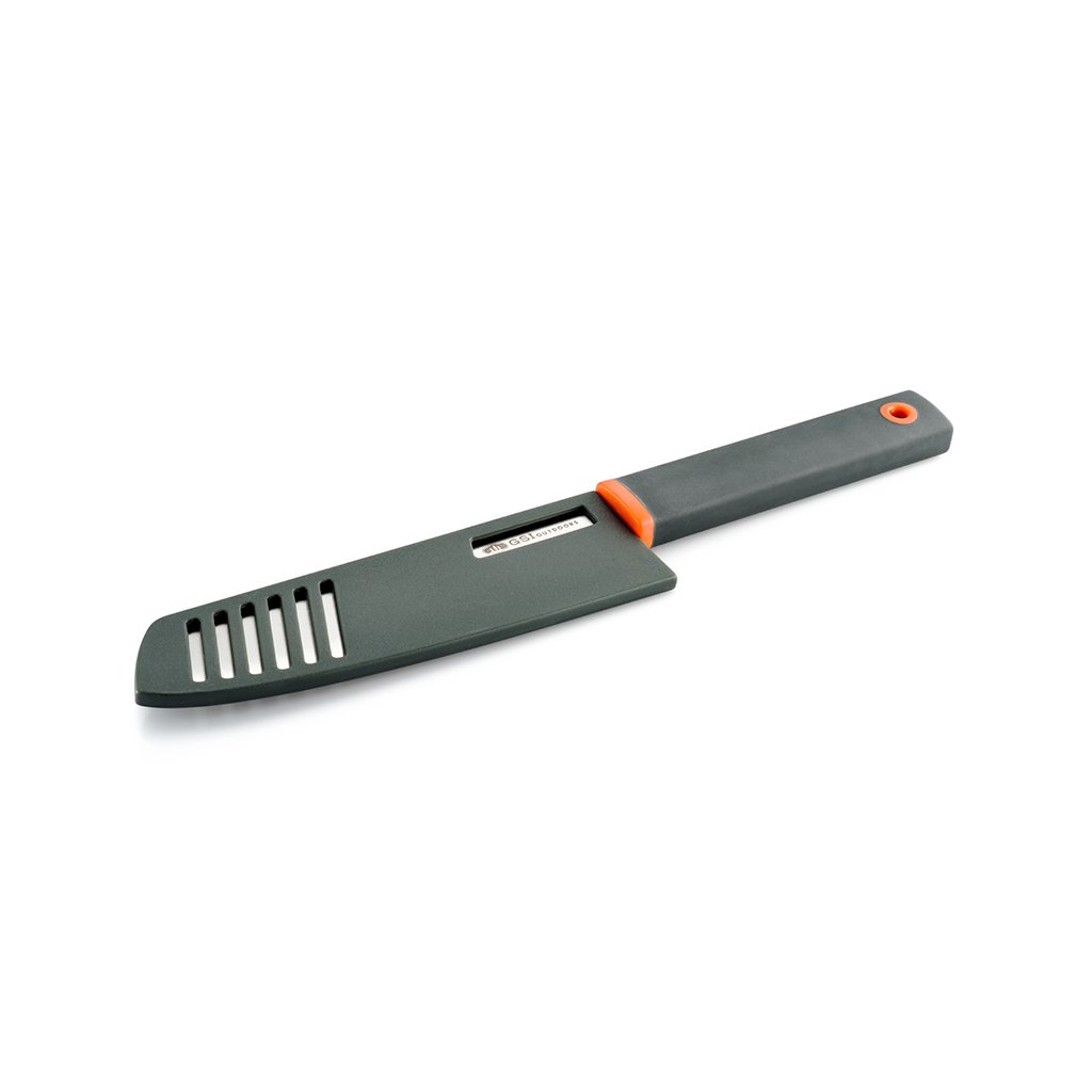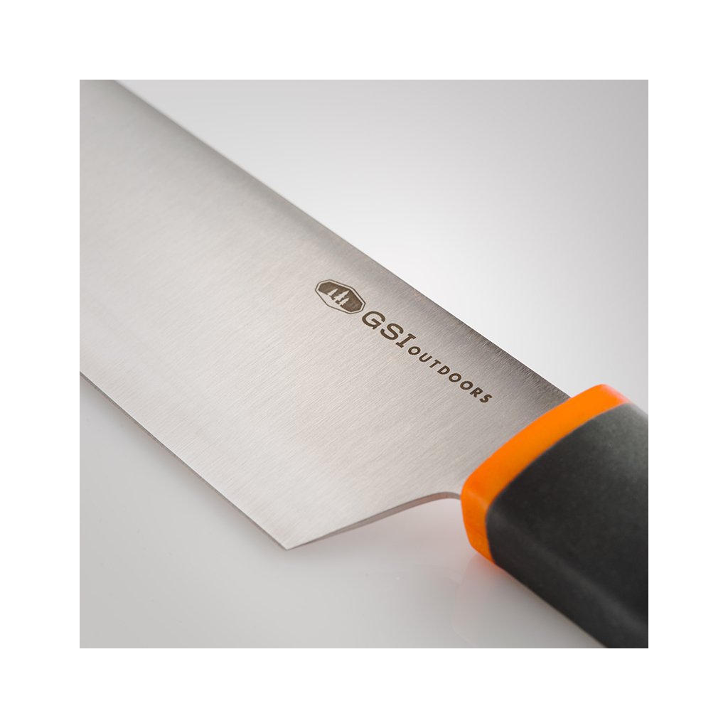 Santoku Chef Knife je velmi kvalitní kuchařský nůž do výbavy outdoorové kuchyně. Je vyroben z nerezové oceli a rukojěť je z maximálně příjemného měkčeného materiálu pro komfortní a bezpečné uchopení. Nůž má na konci rukojeti otvor pro zavěšení.