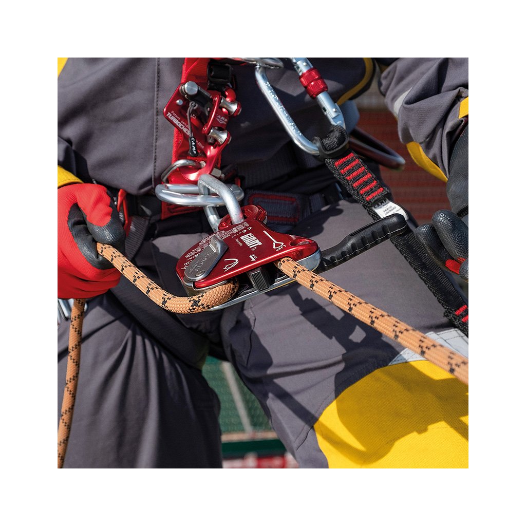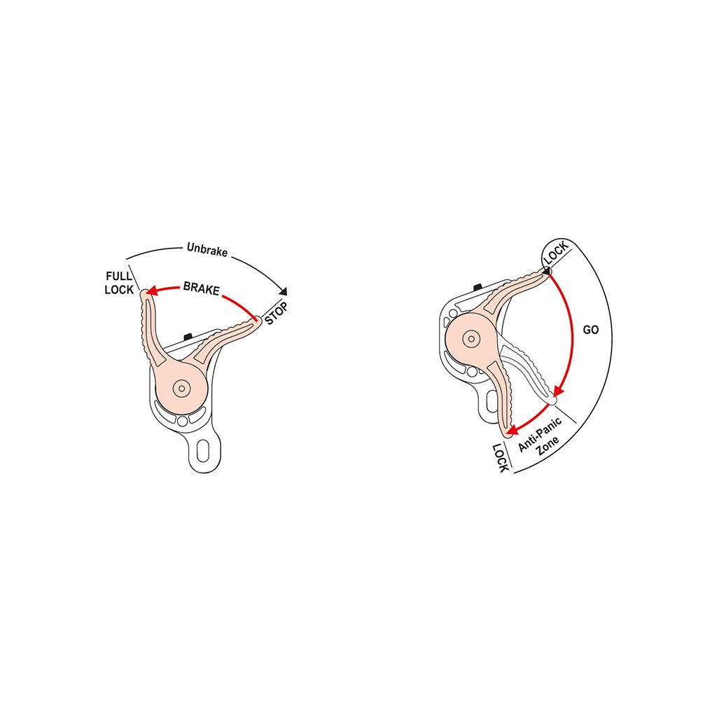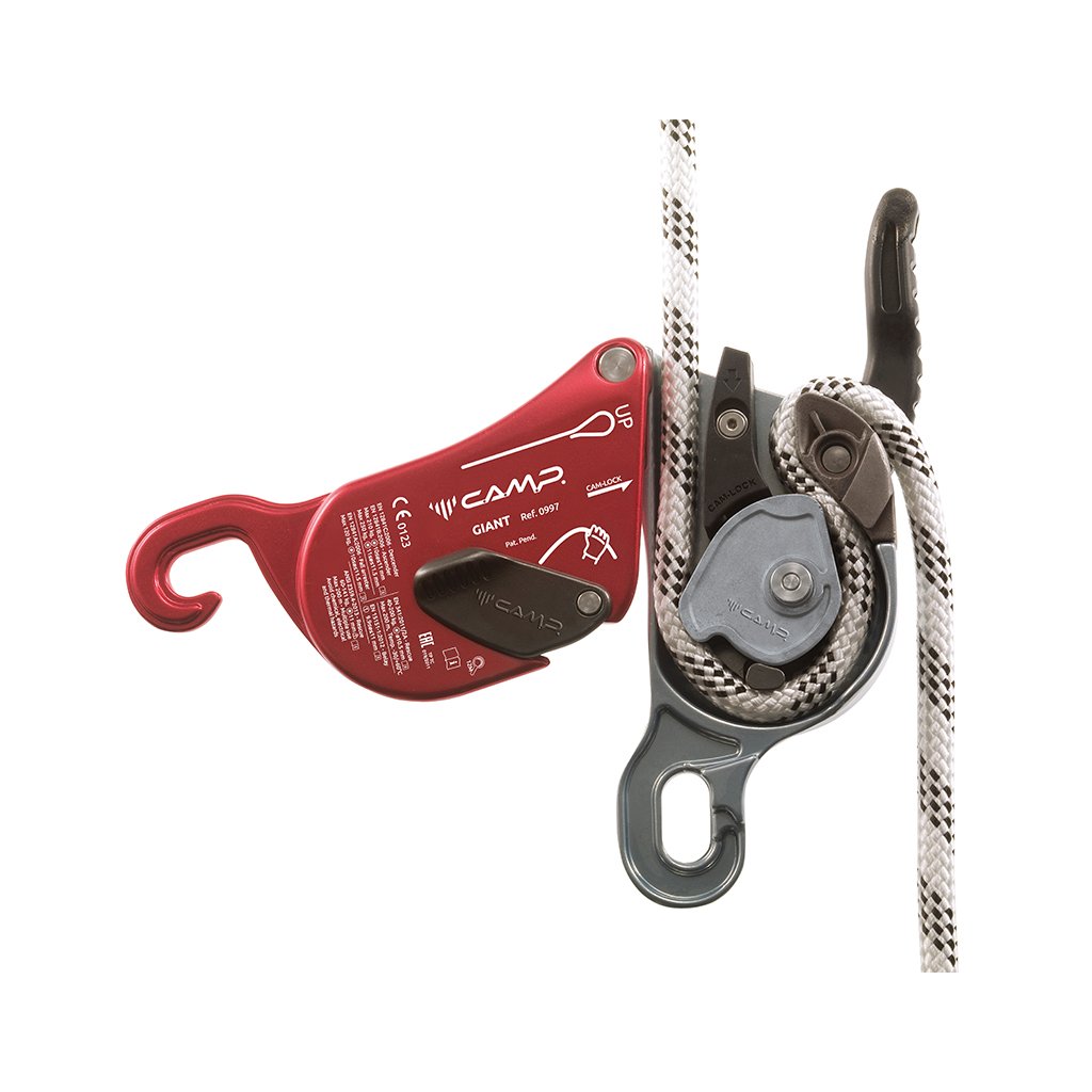 Inovativní multifunkční slaňovací brzda pro lana o průměru 9,9 - 11,5mm, která je určena pro výškové práce a záchranné akce. Patentovaný vnitřní mechanismus brzdy Camp Giant je kombinovaný s robustní konstrukcí a pokročilou ergonomií pro jemné a přesné ovládání, a to i při těžkých zátěžích (až 210kg při záchraně osob). Tato slaňovací brzda je certifikována také pro použití jako zachycovač pádu. Ovládací páka brzdy je vybavena systémem antipanic. Ten uzamkne lano a zastaví sestup v případě, kdy dojde k nadměrnému tlaku na páku uživatelem. Pomocí ovládacího tlačítka lze držet svěrnou vačku otevřenou. To umožňuje lehké posunování a prokluz lana. Brzdu lze otevřít pro vložení nebo vyjmutí lana bez demontáže karabiny.