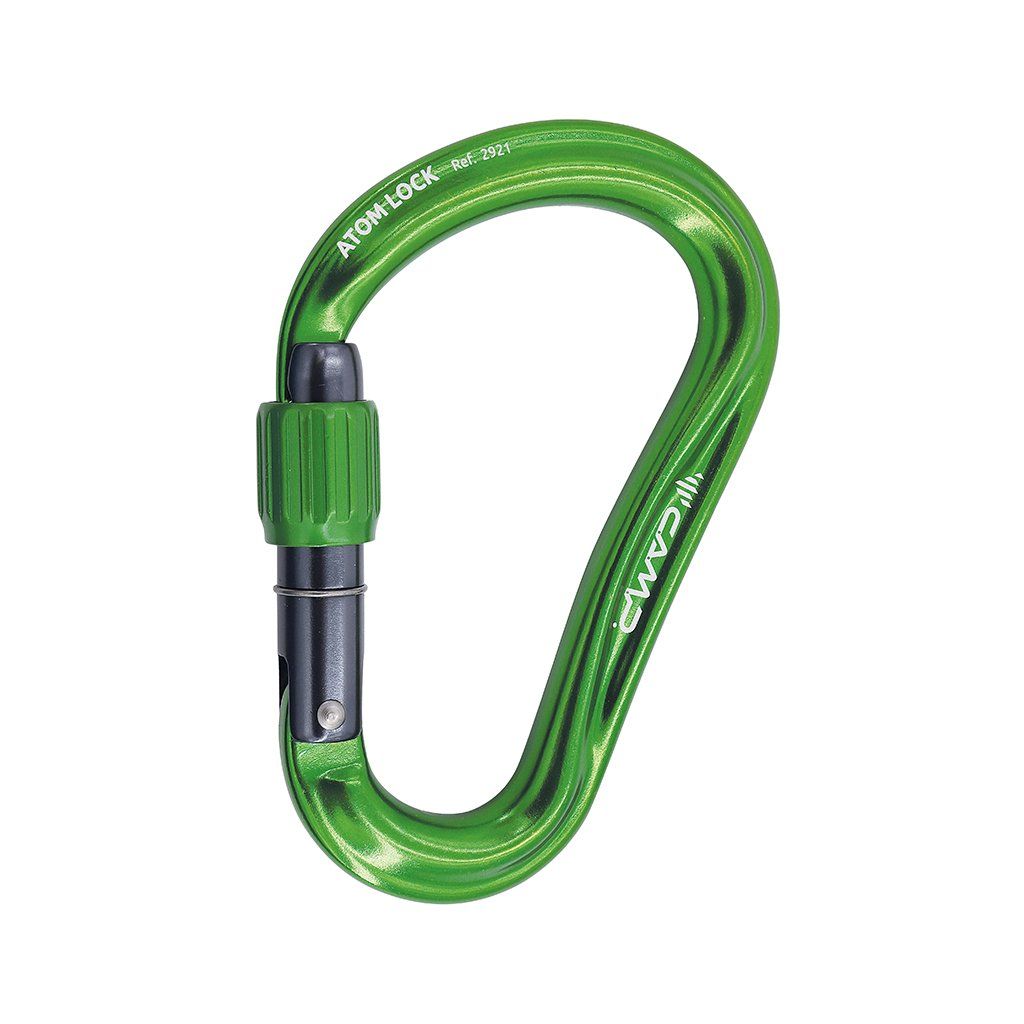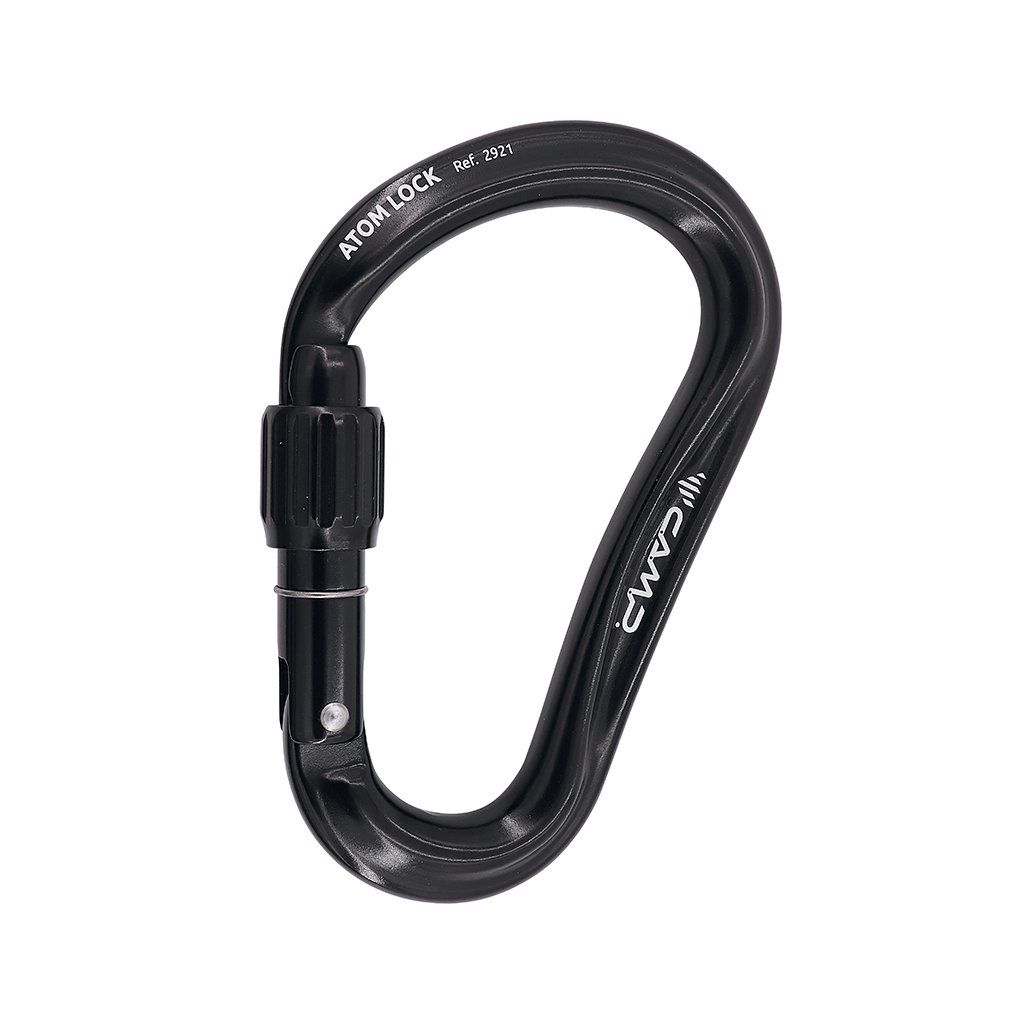 Atom Lock je velká HMS karabina určená k jištění a slaňování. Atom Lock je opatřena patentovanou úpravou SphereLock, která přesným výbrusem nosu a zámku karabiny zvyšuje pevnost při zatížení. Díky velké světlosti karabiny je práce s lanem snadnější. Nově upravená šroubovací pojistka zámku zaručuje optimální skluz závitu pro tu nejjednodušší manipulaci jednou rukou. Pro zvýšení bezpečnosti je zámek karabiny opatřen laserovým výbrusem, který značí, je-li pojistka zámku dostatečně zašroubována.