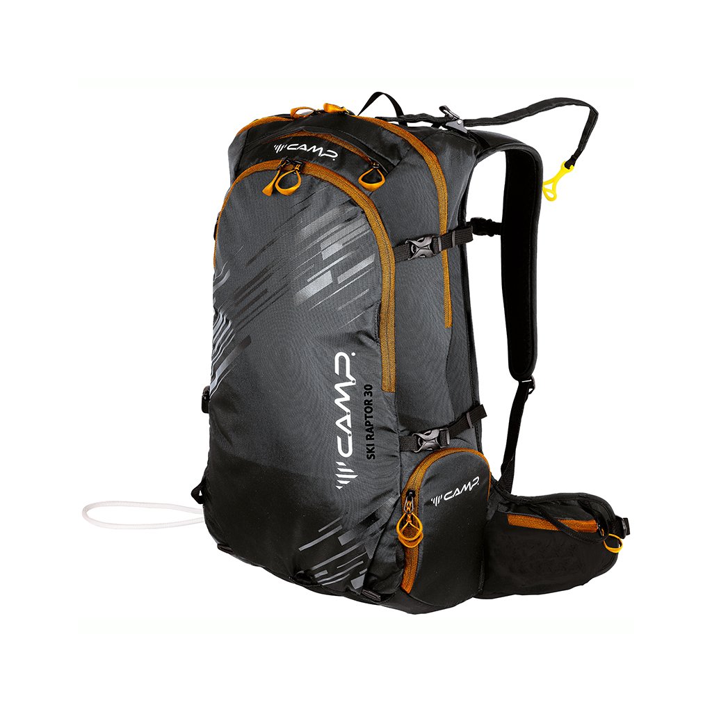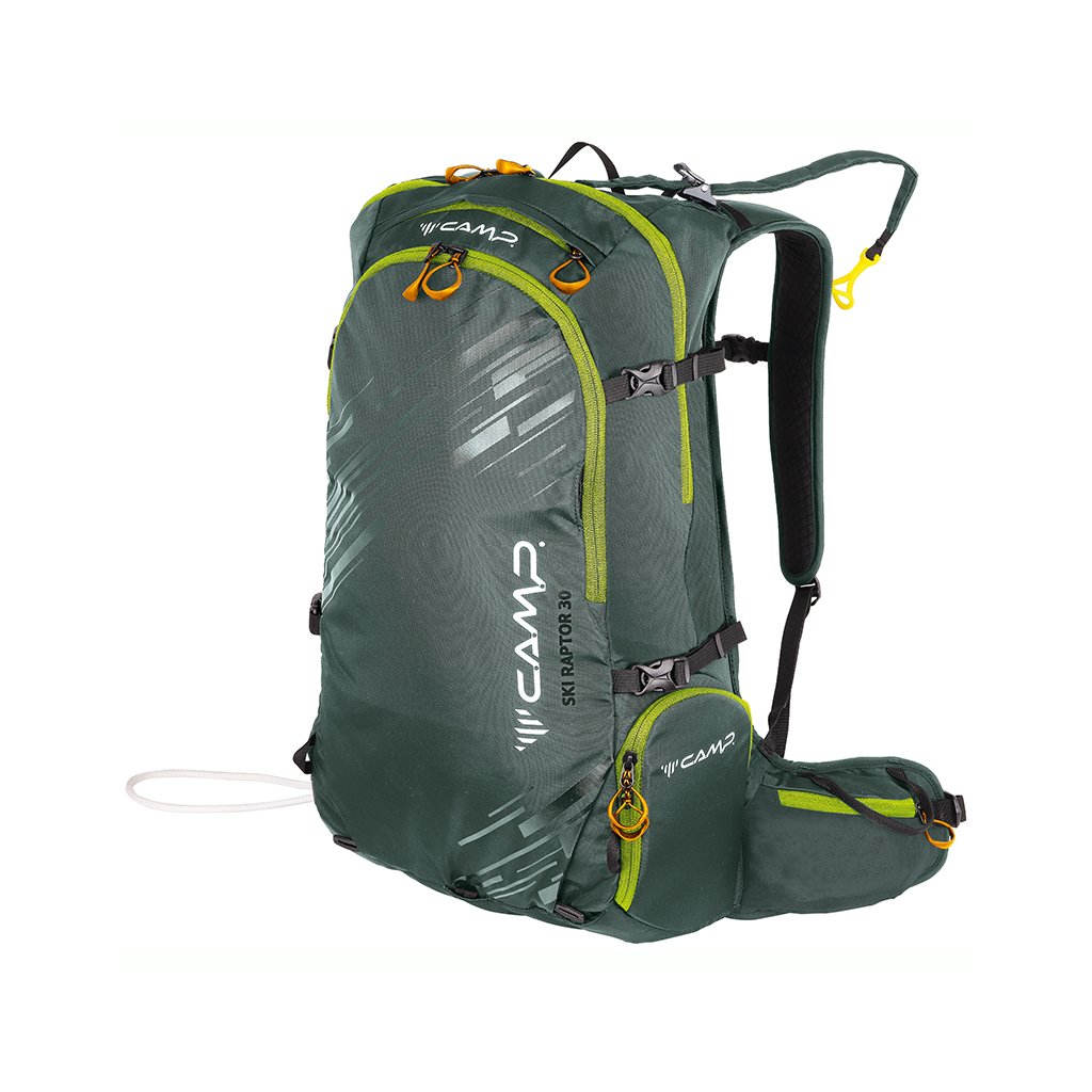 Ski Raptor 30 je skialpový batoh navržený pro krátkou i celodenní zimní túru. Konstrukční a funkční prvky vycházejí z profesionálních CAMP závodních skialpových batohů. Ski Raptor oproti závodním verzím nabízí polstrovaní zad, ramenních a bederních popruhů a je vyroben z velmi odolné textilie 420D Ripstop nylon. Pro jednoduché a rychlé sundání / nahození lyží, bez nutnosti sundávat batoh, slouží inovativní systém X-Press. Systém X-Press lze nastavit do dvou poloh pro snadnější upnutí lyží i při naplněném / prázdnějším batohu. Další předností batohu Ski Raptor je přístup do hlavní komory přes záda, zipem oddělená komora pro mačky s bočním vstupem, přední kapsa s rychlým přístupem pro lopatu a sondu a doplňky pro uchycení cepínu, hůlek, přilby, či lyží na boční část batohu.