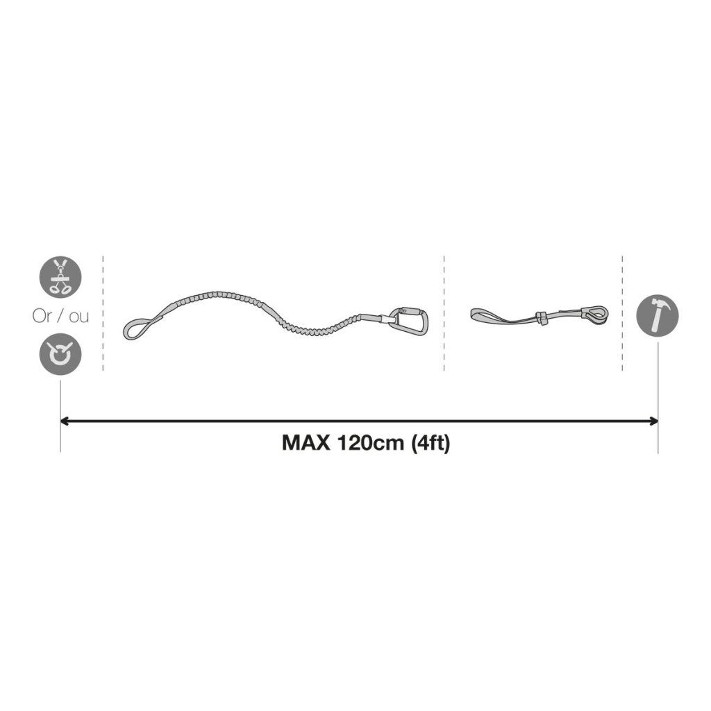 Elastická slučka, ktorá zabráni pádu náradia z výšky. Pevný popruh umožňuje pripojiť nástroje s hmotnosťou až 5 kg. V kombinácii so slučkami PETZL TOOLINK má celkovú dĺžku až 120 cm. Zároveň táto kombinácia umožňuje rýchle menenie pracovných nástrojov. Súčasťou je D karabína s priečkou.