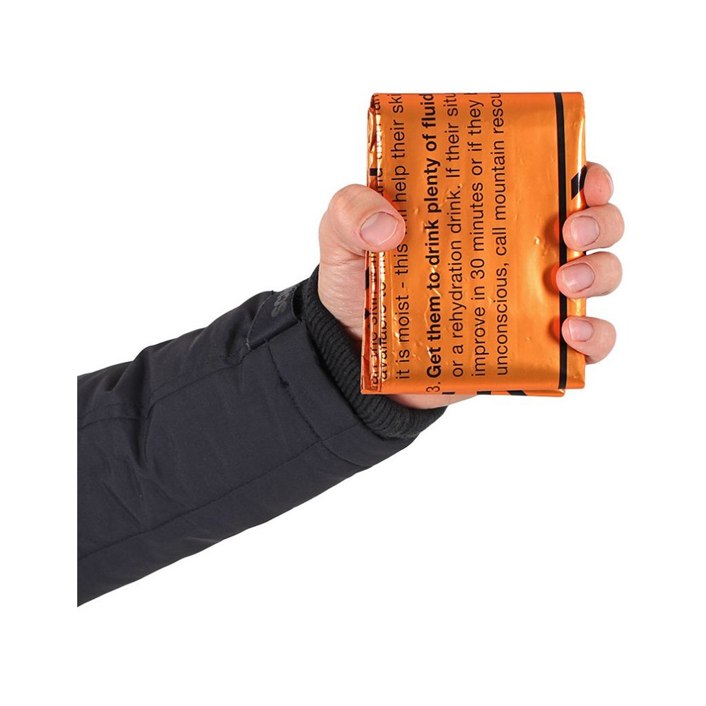 Heatshield Blanket Single je nouzová, odolná a skladná fólie pro 1 osobu, která pomůže udržet tělesnou teplotu v případě úrazu nebo při rychlém zhoršení počasí. Je vyrobena z pokoveného odolného polyethylenu, který odráží zpátky 90% vyzařovaného tělesného tepla. Fólie je nepromokavá, větruodolná a odráží radarové vlny. Díky své pevnosti je možné ji použít opakovaně.