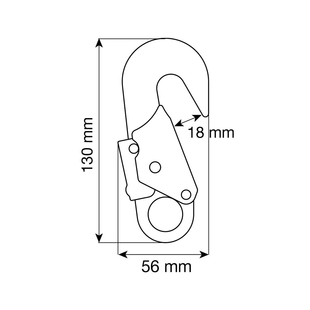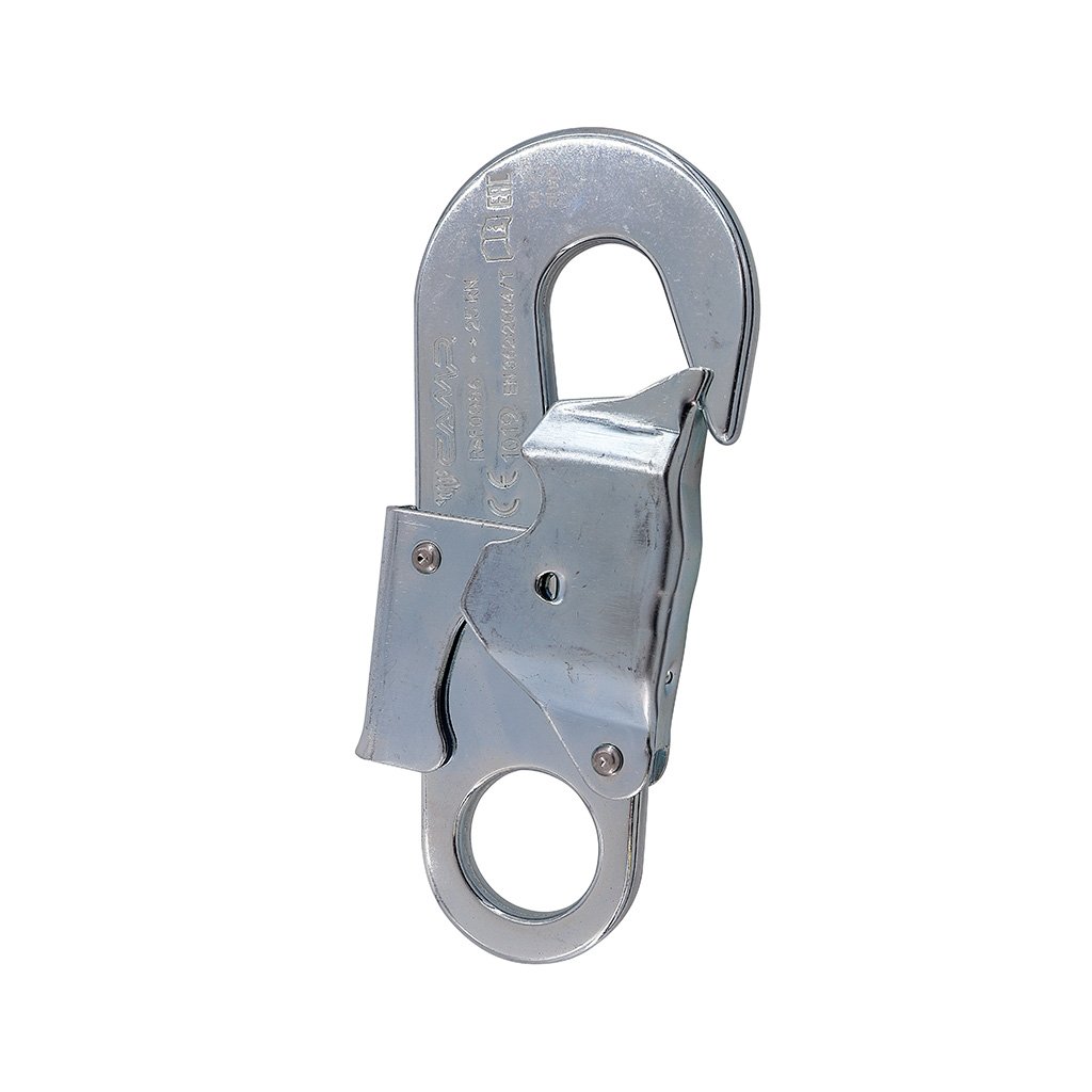 Zajišťovací ocelový hák s dlaňovou pojistkou pro jištění na střešních konstrukcích za záchranné vedení (lifeline) nebo pro připnutí přímo do zadního oka postroje. Světlost háku je 18mm. Systém zamykání s dvojitou dlaňovou pojistkou zajišťuje vysokou úroveň bezpečnosti a snadnou manipulaci.