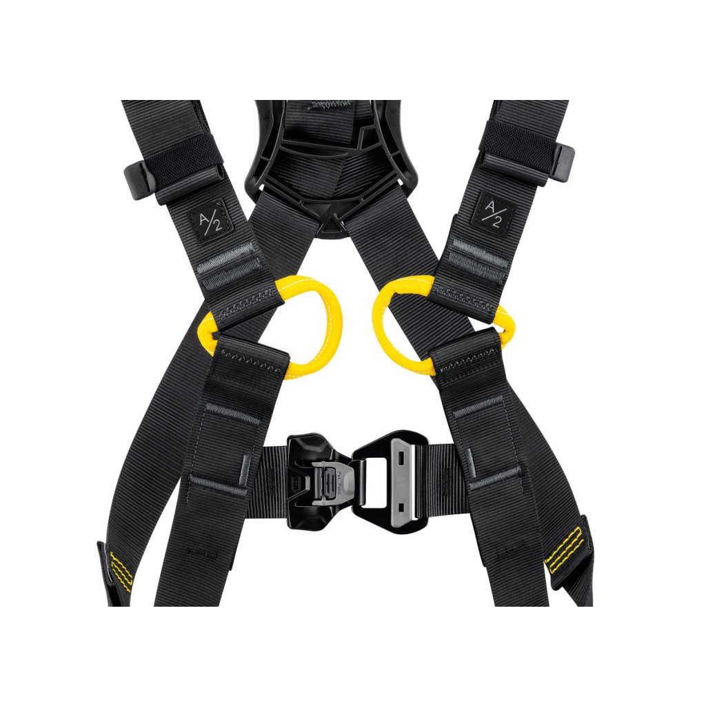 - Barevně označené popruhy (žlutá / černá) poskytují rychlou identifikaci horní a dolní části postroje před nasazením