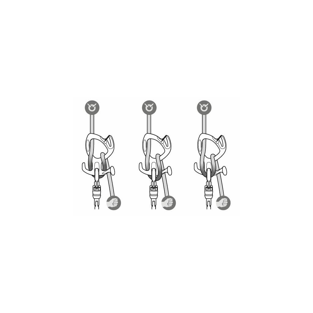 - plastový kroužek zajišťuje správnou polohu spojky, snadná instalace lana bez nutnosti odpojit sestavu z postroje, což snižuje nebezpečí jejího upuštění