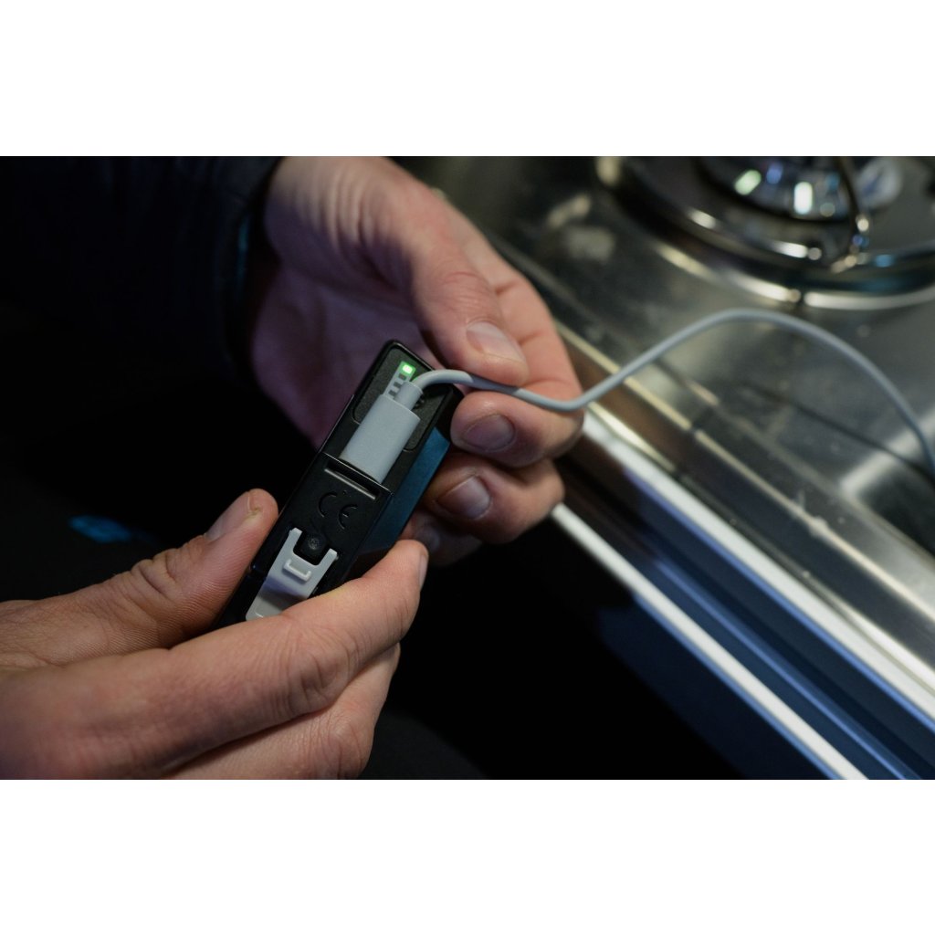 Dobíjecí Li-Ionový akumulátor s kapacitou 3200 mAh, dobíjecí pomocí USB portu typu C, který lze vyjmout ze zadní základové desky a používat samostatně jako power banku pro nabíjení jiných zařízení, jako např. hodinek nebo telefonu