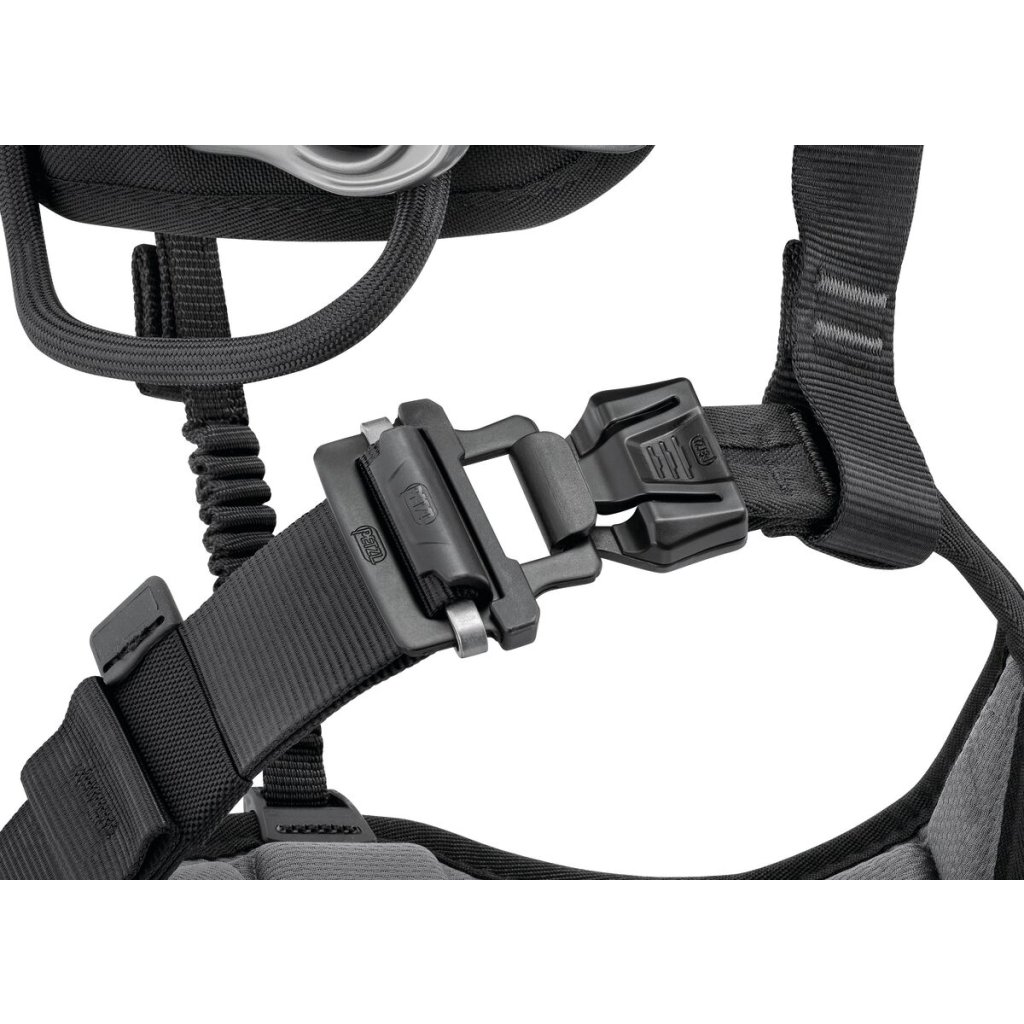 - Hrudný lanový blokant CROLL L je pripojený priamo do predného pripojovacieho bodu pre vyššiu efektivitu a voľnosť pohybu pri výstupoch po lane